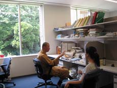 全学生に対して、学生個人が専用で使用することができる机、書棚、ロッカーを備え、個々の机でインターネット接続ができる自習室が整備されている。自習室にはプリンタが設置されているので、原稿や資料の作成に利用できる。